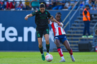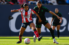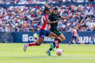San Luis Potosí, San Luis Potosí, 22 de marzo de 2026. Amina Bello (I), durante el partido correspondiente a la jornada 13 del torneo Clausura 2026 de la Liga BBVA MX Femenil, entre el Atlético San Luis y las Tigres de la UANL, realizado en el estadio Libertad Financiera. Foto: Imago7/ Hugo Martinez