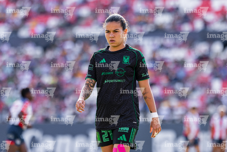 San Luis Potosí, San Luis Potosí, 22 de marzo de 2026. Cecilia Santiago, durante el partido correspondiente a la jornada 13 del torneo Clausura 2026 de la Liga BBVA MX Femenil, entre el Atlético San Luis y las Tigres de la UANL, realizado en el estadio Libertad Financiera. Foto: Imago7/ Olimpia Puga