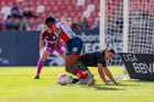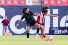 San Luis Potosí, San Luis Potosí, 22 de marzo de 2026. Farlyn Caicedo y María Sánchez, durante el partido correspondiente a la jornada 13 del torneo Clausura 2026 de la Liga BBVA MX Femenil, entre el Atlético San Luis y las Tigres de la UANL, realizado en el estadio Libertad Financiera. Foto: Imago7/ Olimpia Puga