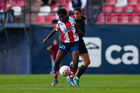 San Luis Potosí, San Luis Potosí, 22 de marzo de 2026. Ilana Izquierdo y Amina Bello, durante el partido correspondiente a la jornada 13 del torneo Clausura 2026 de la Liga BBVA MX Femenil, entre el Atlético San Luis y las Tigres de la UANL, realizado en el estadio Libertad Financiera. Foto: Imago7/ Hugo Martinez