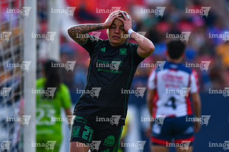 San Luis Potosí, San Luis Potosí, 22 de marzo de 2026. Enyerliannys Higuera en lamento, durante el partido correspondiente a la jornada 13 del torneo Clausura 2026 de la Liga BBVA MX Femenil, entre el Atlético San Luis y las Tigres de la UANL, realizado en el estadio Libertad Financiera. Foto: Imago7/ Hugo Martinez