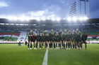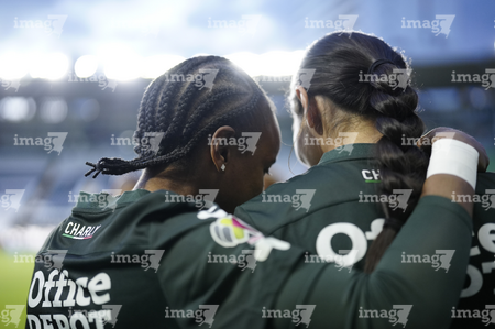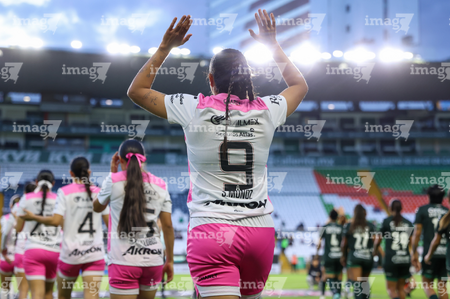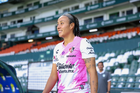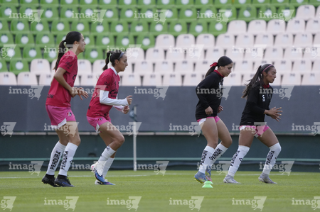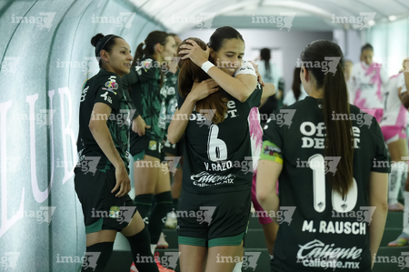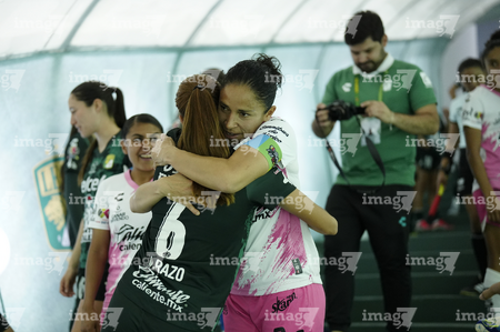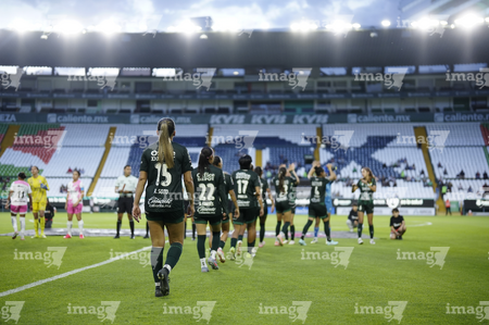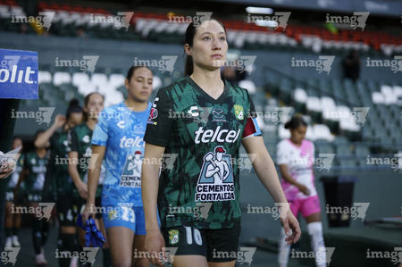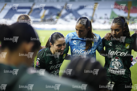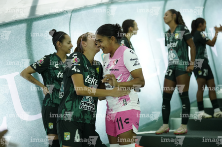 León, Guanajuato, 23 de marzo de 2026. Protocolo, durante el partido correspondiente a la jornada 13 del torneo Clausura 2026 de la Liga BBVA MX Femenil, entre las Esmeraldas del León y las Rojinegras del Atlas, realizado en el estadio León. Foto: Imago7/ Sebastian Laureano Miranda