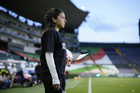 León, Guanajuato, 23 de marzo de 2026. Sanjuana Muñoz, durante el partido correspondiente a la jornada 13 del torneo Clausura 2026 de la Liga BBVA MX Femenil, entre las Esmeraldas del León y las Rojinegras del Atlas, realizado en el estadio León. Foto: Imago7/ Israel Lopez