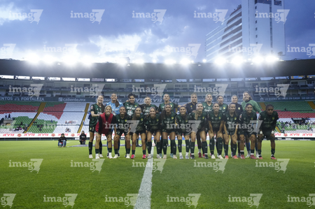 León, Guanajuato, 23 de marzo de 2026. Foto de equipo de León, durante el partido correspondiente a la jornada 13 del torneo Clausura 2026 de la Liga BBVA MX Femenil, entre las Esmeraldas del León y las Rojinegras del Atlas, realizado en el estadio León. Foto: Imago7/ Sebastian Laureano Miranda
