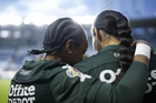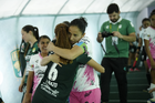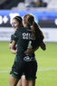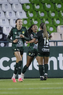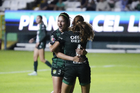 León, Guanajuato, 23 de marzo de 2026. Mayalu Rausch y Ana Gaby Lozada en festejo, durante el partido correspondiente a la jornada 13 del torneo Clausura 2026 de la Liga BBVA MX Femenil, entre las Esmeraldas del León y las Rojinegras del Atlas, realizado en el estadio León. Foto: Imago7/ Sebastian Laureano Miranda