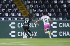 León, Guanajuato, 23 de marzo de 2026. Valeria Razo y Noemí Villalobos, durante el partido correspondiente a la jornada 13 del torneo Clausura 2026 de la Liga BBVA MX Femenil, entre las Esmeraldas del León y las Rojinegras del Atlas, realizado en el estadio León. Foto: Imago7/ Sebastian Laureano Miranda