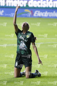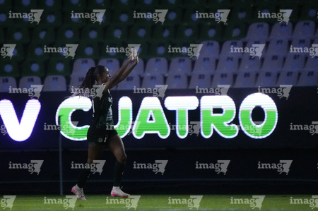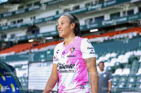 León, Guanajuato, 23 de marzo de 2026. Portigoles, durante el partido correspondiente a la jornada 13 del torneo Clausura 2026 de la Liga BBVA MX Femenil, entre las Esmeraldas del León y las Rojinegras del Atlas, realizado en el estadio León. Foto: Imago7/ Sebastian Laureano Miranda