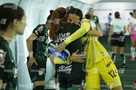 León, Guanajuato, 23 de marzo de 2026. Valeria Razo y Camila Vázquez, durante el partido correspondiente a la jornada 13 del torneo Clausura 2026 de la Liga BBVA MX Femenil, entre las Esmeraldas del León y las Rojinegras del Atlas, realizado en el estadio León. Foto: Imago7/ Sebastian Laureano Miranda