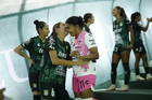 León, Guanajuato, 23 de marzo de 2026. Jugadoras del Atlas femenil, durante el partido correspondiente a la jornada 13 del torneo Clausura 2026 de la Liga BBVA MX Femenil, entre las Esmeraldas del León y las Rojinegras del Atlas, realizado en el estadio León. Foto: Imago7/ Israel Lopez