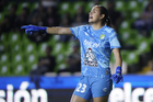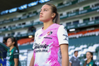 León, Guanajuato, 23 de marzo de 2026. Karol Contreras, durante el partido correspondiente a la jornada 13 del torneo Clausura 2026 de la Liga BBVA MX Femenil, entre las Esmeraldas del León y las Rojinegras del Atlas, realizado en el estadio León. Foto: Imago7/ Sebastian Laureano Miranda