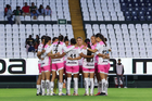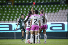León, Guanajuato, 23 de marzo de 2026. Jugadoras del Atlas femenil, durante el partido correspondiente a la jornada 13 del torneo Clausura 2026 de la Liga BBVA MX Femenil, entre las Esmeraldas del León y las Rojinegras del Atlas, realizado en el estadio León. Foto: Imago7/ Sebastian Laureano Miranda