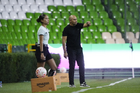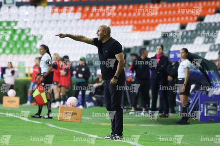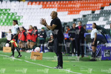León, Guanajuato, 23 de marzo de 2026. Alejandro Corona, director técnico, durante el partido correspondiente a la jornada 13 del torneo Clausura 2026 de la Liga BBVA MX Femenil, entre las Esmeraldas del León y las Rojinegras del Atlas, realizado en el estadio León. Foto: Imago7/ Sebastian Laureano Miranda