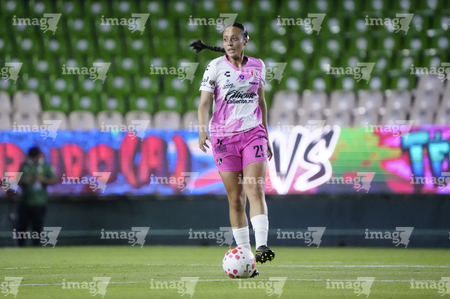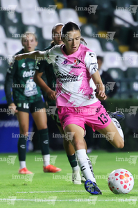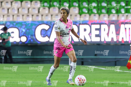 León, Guanajuato, 23 de marzo de 2026. Fernanda Pinilla, durante el partido correspondiente a la jornada 13 del torneo Clausura 2026 de la Liga BBVA MX Femenil, entre las Esmeraldas del León y las Rojinegras del Atlas, realizado en el estadio León. Foto: Imago7/ Sebastian Laureano Miranda