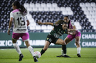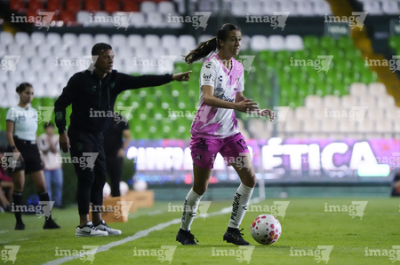 León, Guanajuato, 23 de marzo de 2026. Ana Gaby Lozada (I), durante el partido correspondiente a la jornada 13 del torneo Clausura 2026 de la Liga BBVA MX Femenil, entre las Esmeraldas del León y las Rojinegras del Atlas, realizado en el estadio León. Foto: Imago7/ Israel Lopez