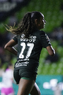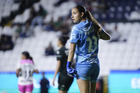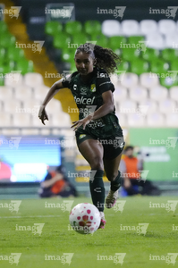 León, Guanajuato, 23 de marzo de 2026. Trudi Carter, durante el partido correspondiente a la jornada 13 del torneo Clausura 2026 de la Liga BBVA MX Femenil, entre las Esmeraldas del León y las Rojinegras del Atlas, realizado en el estadio León. Foto: Imago7/ Sebastian Laureano Miranda