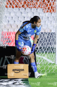 León, Guanajuato, 23 de marzo de 2026. Natalia Acuña toma Balón de futbol Nike Control de caja de Amazon, durante el partido correspondiente a la jornada 13 del torneo Clausura 2026 de la Liga BBVA MX Femenil, entre las Esmeraldas del León y las Rojinegras del Atlas, realizado en el estadio León. Foto: Imago7/ Israel Lopez
