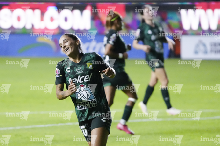 León, Guanajuato, 23 de marzo de 2026. Itzell Alemán en festejo de gol, durante el partido correspondiente a la jornada 13 del torneo Clausura 2026 de la Liga BBVA MX Femenil, entre las Esmeraldas del León y las Rojinegras del Atlas, realizado en el estadio León. Foto: Imago7/ Sebastian Laureano Miranda