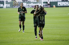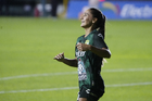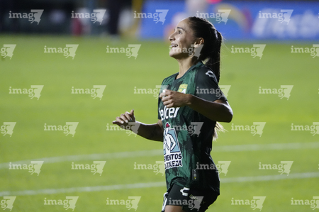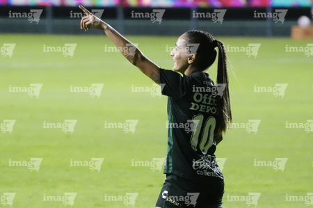 León, Guanajuato, 23 de marzo de 2026. Solange Lemos en festejo de gol, durante el partido correspondiente a la jornada 13 del torneo Clausura 2026 de la Liga BBVA MX Femenil, entre las Esmeraldas del León y las Rojinegras del Atlas, realizado en el estadio León. Foto: Imago7/ Sebastian Laureano Miranda