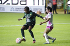 León, Guanajuato, 23 de marzo de 2026. Itzell Alemán, durante el partido correspondiente a la jornada 13 del torneo Clausura 2026 de la Liga BBVA MX Femenil, entre las Esmeraldas del León y las Rojinegras del Atlas, realizado en el estadio León. Foto: Imago7/ Sebastian Laureano Miranda