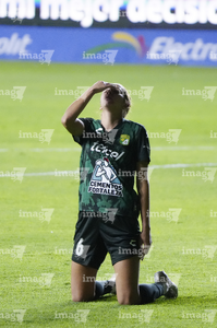 León, Guanajuato, 23 de marzo de 2026. Itzell Alemán anota gol, durante el partido correspondiente a la jornada 13 del torneo Clausura 2026 de la Liga BBVA MX Femenil, entre las Esmeraldas del León y las Rojinegras del Atlas, realizado en el estadio León. Foto: Imago7/ Sebastian Laureano Miranda
