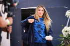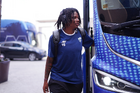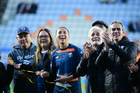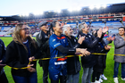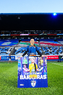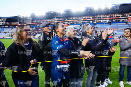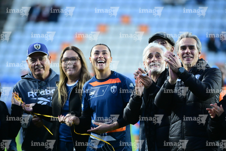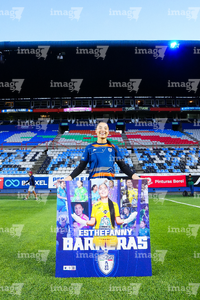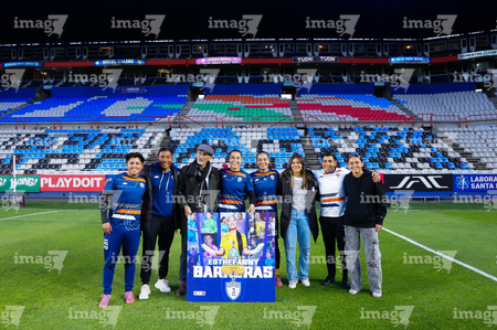 Pachuca, Hidalgo, 27 de marzo de 2026. Esthefanny Barreras revela palco con su nombre, durante el partido correspondiente a la jornada 14 del torneo Clausura 2026 de la Liga BBVA MX Femenil, entre las Tuzas del Pachuca y las Rayadas del Monterrey, realizado en el estadio Hidalgo. Foto: Imago7/ Alexis Chavez
