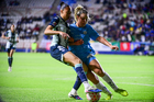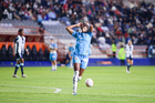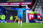 Pachuca, Hidalgo, 27 de marzo de 2026. Aline Gomes en lamento, durante el partido correspondiente a la jornada 14 del torneo Clausura 2026 de la Liga BBVA MX Femenil, entre las Tuzas del Pachuca y las Rayadas del Monterrey, realizado en el estadio Hidalgo. Foto: Imago7/ Alexis Chavez