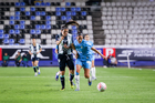 Pachuca, Hidalgo, 27 de marzo de 2026. Aline Gomes y Karol Bernal, durante el partido correspondiente a la jornada 14 del torneo Clausura 2026 de la Liga BBVA MX Femenil, entre las Tuzas del Pachuca y las Rayadas del Monterrey, realizado en el estadio Hidalgo. Foto: Imago7/ Alexis Chavez