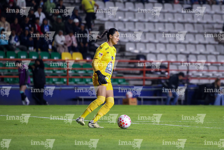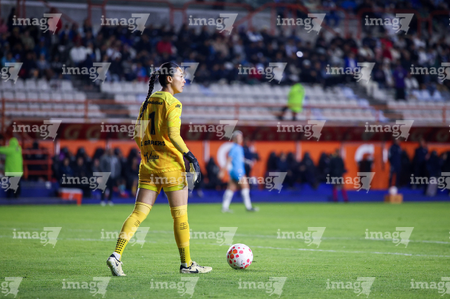 Pachuca, Hidalgo, 27 de marzo de 2026. Portigoles, durante el partido correspondiente a la jornada 14 del torneo Clausura 2026 de la Liga BBVA MX Femenil, entre las Tuzas del Pachuca y las Rayadas del Monterrey, realizado en el estadio Hidalgo. Foto: Imago7/ Alexis Chavez