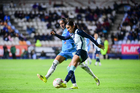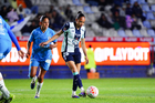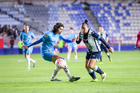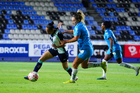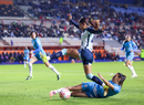 Pachuca, Hidalgo, 27 de marzo de 2026. Andrea Pereira y Jermaine Seoposenwe, durante el partido correspondiente a la jornada 14 del torneo Clausura 2026 de la Liga BBVA MX Femenil, entre las Tuzas del Pachuca y las Rayadas del Monterrey, realizado en el estadio Hidalgo. Foto: Imago7/ Alexis Chavez