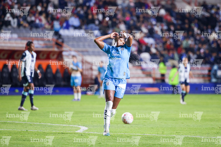 Pachuca, Hidalgo, 27 de marzo de 2026. Abril Fragoso en lamento, durante el partido correspondiente a la jornada 14 del torneo Clausura 2026 de la Liga BBVA MX Femenil, entre las Tuzas del Pachuca y las Rayadas del Monterrey, realizado en el estadio Hidalgo. Foto: Imago7/ Alexis Chavez