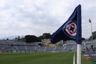 Cuernavaca, Morelos, 28 de marzo de 2026. Banderín con escudo del Cruz Azul, durante el partido correspondiente a la jornada 14 del torneo Clausura 2026 de la Liga BBVA MX Femenil, entre la Máquina Celeste del Cruz Azul y el Club Puebla, realizado en el estadio de la Unidad Deportiva Centenario. Foto: Imago7/ Daniel Sydney