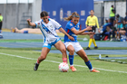 Cuernavaca, Morelos, 28 de marzo de 2026. Daniela Calderón y Jaidy Gutiérrez, durante el partido correspondiente a la jornada 14 del torneo Clausura 2026 de la Liga BBVA MX Femenil, entre la Máquina Celeste del Cruz Azul y el Club Puebla, realizado en el estadio de la Unidad Deportiva Centenario. Foto: Imago7/ Daniel Sydney