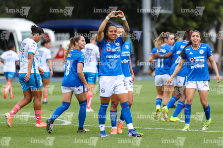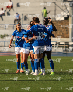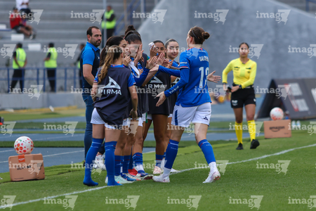 Cuernavaca, Morelos, 28 de marzo de 2026. Jugadoras de Cruz Azul en festejo, durante el partido correspondiente a la jornada 14 del torneo Clausura 2026 de la Liga BBVA MX Femenil, entre la Máquina Celeste del Cruz Azul y el Club Puebla, realizado en el estadio de la Unidad Deportiva Centenario. Foto: Imago7/ Daniel Sydney