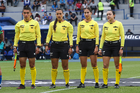 Cuernavaca, Morelos, 28 de marzo de 2026. Cuerpo arbitral, durante el partido correspondiente a la jornada 14 del torneo Clausura 2026 de la Liga BBVA MX Femenil, entre la Máquina Celeste del Cruz Azul y el Club Puebla, realizado en el estadio de la Unidad Deportiva Centenario. Foto: Imago7/ Daniel Sydney