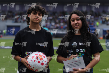 Cuernavaca, Morelos, 28 de marzo de 2026. Embajadoras, durante el partido correspondiente a la jornada 14 del torneo Clausura 2026 de la Liga BBVA MX Femenil, entre la Máquina Celeste del Cruz Azul y el Club Puebla, realizado en el estadio de la Unidad Deportiva Centenario. Foto: Imago7/ Daniel Sydney