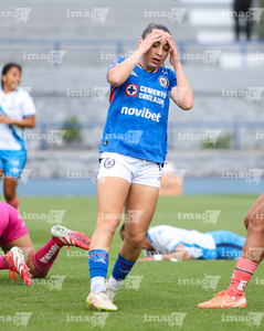 Cuernavaca, Morelos, 28 de marzo de 2026. Cristina Montaño en lamento, durante el partido correspondiente a la jornada 14 del torneo Clausura 2026 de la Liga BBVA MX Femenil, entre la Máquina Celeste del Cruz Azul y el Club Puebla, realizado en el estadio de la Unidad Deportiva Centenario. Foto: Imago7/ Daniel Sydney