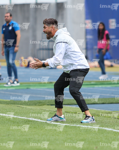 Cuernavaca, Morelos, 28 de marzo de 2026. Israel del Real, director técnico, durante el partido correspondiente a la jornada 14 del torneo Clausura 2026 de la Liga BBVA MX Femenil, entre la Máquina Celeste del Cruz Azul y el Club Puebla, realizado en el estadio de la Unidad Deportiva Centenario. Foto: Imago7/ Daniel Sydney