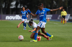 Cuernavaca, Morelos, 28 de marzo de 2026. Niomi Grimaldo y Fátima Rosales, durante el partido correspondiente a la jornada 14 del torneo Clausura 2026 de la Liga BBVA MX Femenil, entre la Máquina Celeste del Cruz Azul y el Club Puebla, realizado en el estadio de la Unidad Deportiva Centenario. Foto: Imago7/ Daniel Sydney