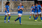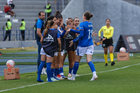 Cuernavaca, Morelos, 28 de marzo de 2026. Jaidy Gutiérrez recibe gol, durante el partido correspondiente a la jornada 14 del torneo Clausura 2026 de la Liga BBVA MX Femenil, entre la Máquina Celeste del Cruz Azul y el Club Puebla, realizado en el estadio de la Unidad Deportiva Centenario. Foto: Imago7/ Daniel Sydney