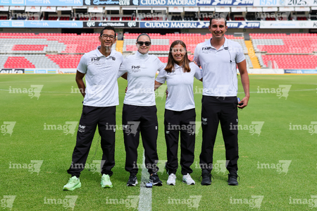 Querétaro, Querétaro, 29 de marzo de 2026. Árbitros, durante el partido correspondiente a la jornada 14 del torneo Clausura 2026 de la Liga BBVA MX Femenil, entre el Club Querétaro y las Bravas de FC Juárez, realizado en el estadio La Corregidora. Foto: Imago7/ Hugo Martinez