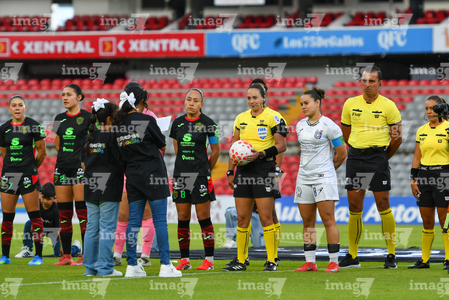 Querétaro, Querétaro, 29 de marzo de 2026. Protocolo, durante el partido correspondiente a la jornada 14 del torneo Clausura 2026 de la Liga BBVA MX Femenil, entre el Club Querétaro y las Bravas de FC Juárez, realizado en el estadio La Corregidora. Foto: Imago7/ Olimpia Puga
