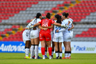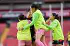 Querétaro, Querétaro, 29 de marzo de 2026. Jugadoras del FC Juárez femenil, durante el partido correspondiente a la jornada 14 del torneo Clausura 2026 de la Liga BBVA MX Femenil, entre el Club Querétaro y las Bravas de FC Juárez, realizado en el estadio La Corregidora. Foto: Imago7/ Hugo Martinez