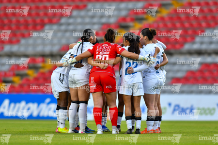 Querétaro, Querétaro, 29 de marzo de 2026. Jugadoras del Querétaro femenil, durante el partido correspondiente a la jornada 14 del torneo Clausura 2026 de la Liga BBVA MX Femenil, entre el Club Querétaro y las Bravas de FC Juárez, realizado en el estadio La Corregidora. Foto: Imago7/ Olimpia Puga