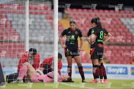 Querétaro, Querétaro, 29 de marzo de 2026. Emily Alvarado resultó lesionada, durante el partido correspondiente a la jornada 14 del torneo Clausura 2026 de la Liga BBVA MX Femenil, entre el Club Querétaro y las Bravas de FC Juárez, realizado en el estadio La Corregidora. Foto: Imago7/ Hugo Martinez