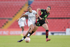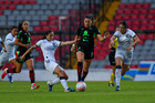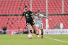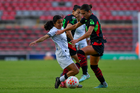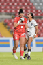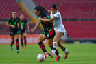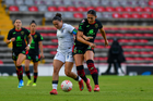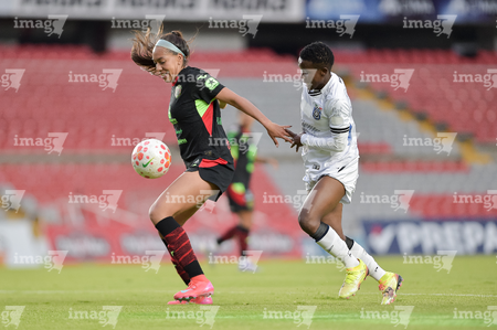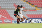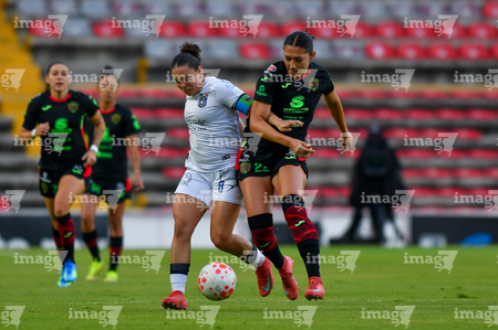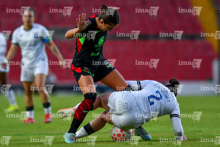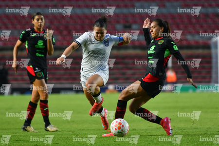 Querétaro, Querétaro, 29 de marzo de 2026. Mónica Rodríguez y Marianyela Jiménez, durante el partido correspondiente a la jornada 14 del torneo Clausura 2026 de la Liga BBVA MX Femenil, entre el Club Querétaro y las Bravas de FC Juárez, realizado en el estadio La Corregidora. Foto: Imago7/ Hugo Martinez