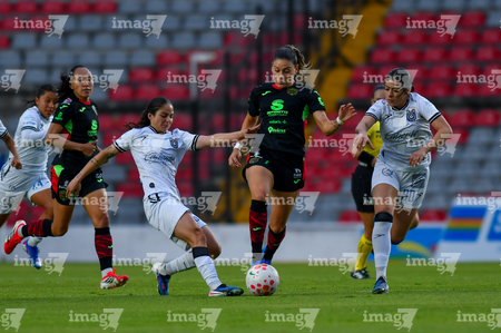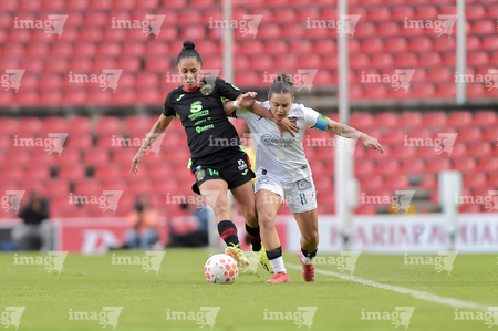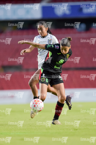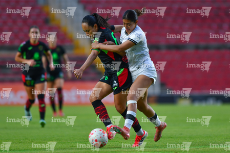 Querétaro, Querétaro, 29 de marzo de 2026. Emily Flores y Norma Palafox, durante el partido correspondiente a la jornada 14 del torneo Clausura 2026 de la Liga BBVA MX Femenil, entre el Club Querétaro y las Bravas de FC Juárez, realizado en el estadio La Corregidora. Foto: Imago7/ Olimpia Puga