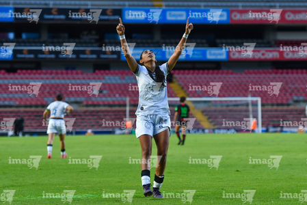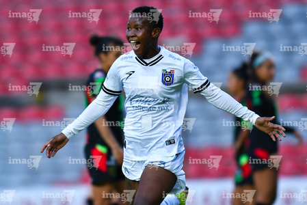 Querétaro, Querétaro, 29 de marzo de 2026. Grace Chanda en festejo de gol, durante el partido correspondiente a la jornada 14 del torneo Clausura 2026 de la Liga BBVA MX Femenil, entre el Club Querétaro y las Bravas de FC Juárez, realizado en el estadio La Corregidora. Foto: Imago7/ Olimpia Puga