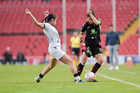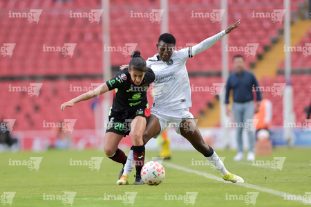 Querétaro, Querétaro, 29 de marzo de 2026. Marianyela Jiménez y Bianca Mora, durante el partido correspondiente a la jornada 14 del torneo Clausura 2026 de la Liga BBVA MX Femenil, entre el Club Querétaro y las Bravas de FC Juárez, realizado en el estadio La Corregidora. Foto: Imago7/ Olimpia Puga