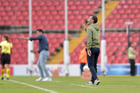 Querétaro, Querétaro, 29 de marzo de 2026. Oscar Fernández, director técnico, durante el partido correspondiente a la jornada 14 del torneo Clausura 2026 de la Liga BBVA MX Femenil, entre el Club Querétaro y las Bravas de FC Juárez, realizado en el estadio La Corregidora. Foto: Imago7/ Hugo Martinez