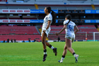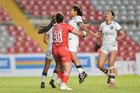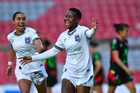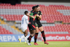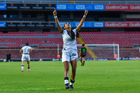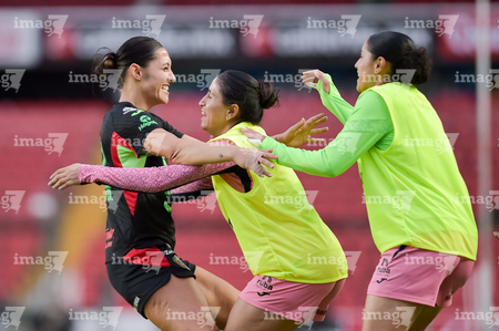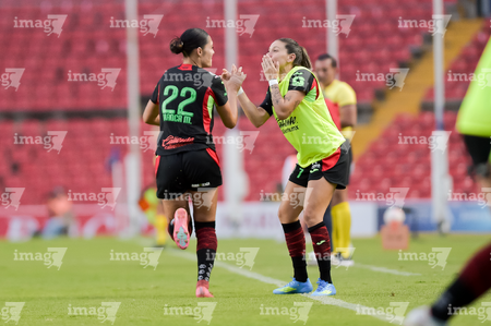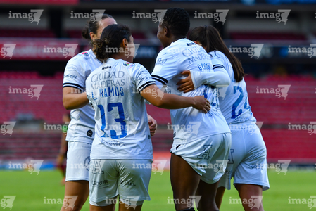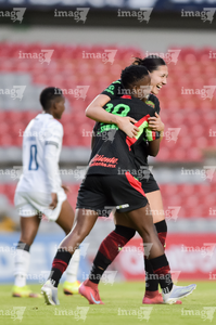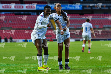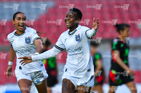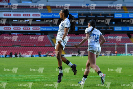 Querétaro, Querétaro, 29 de marzo de 2026. Grace Chanda y Victoria Ceceña en festejo de gol, durante el partido correspondiente a la jornada 14 del torneo Clausura 2026 de la Liga BBVA MX Femenil, entre el Club Querétaro y las Bravas de FC Juárez, realizado en el estadio La Corregidora. Foto: Imago7/ Olimpia Puga